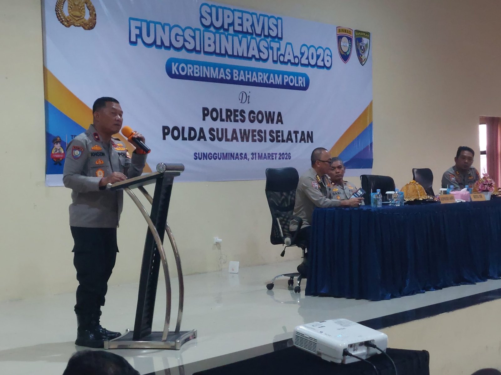 TAKALAR | TUBARANIA.COM-Tim Supervisi Fungsi Binmas Tahun Anggaran 2026 Korbinmas Baharkam Polri melaksanakan kunjungan kerja di Polres Gowa, Selasa (31/3/2026). Kegiatan supervisi dipimpin langsung oleh Kabagopsnalev Korbinmas Baharkam Polri, Brigjen Pol Mochamad Khozin, S.H., S.I.K., M.H.