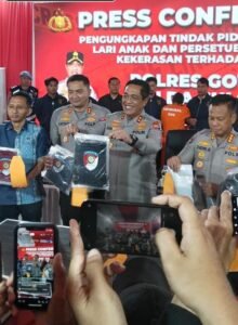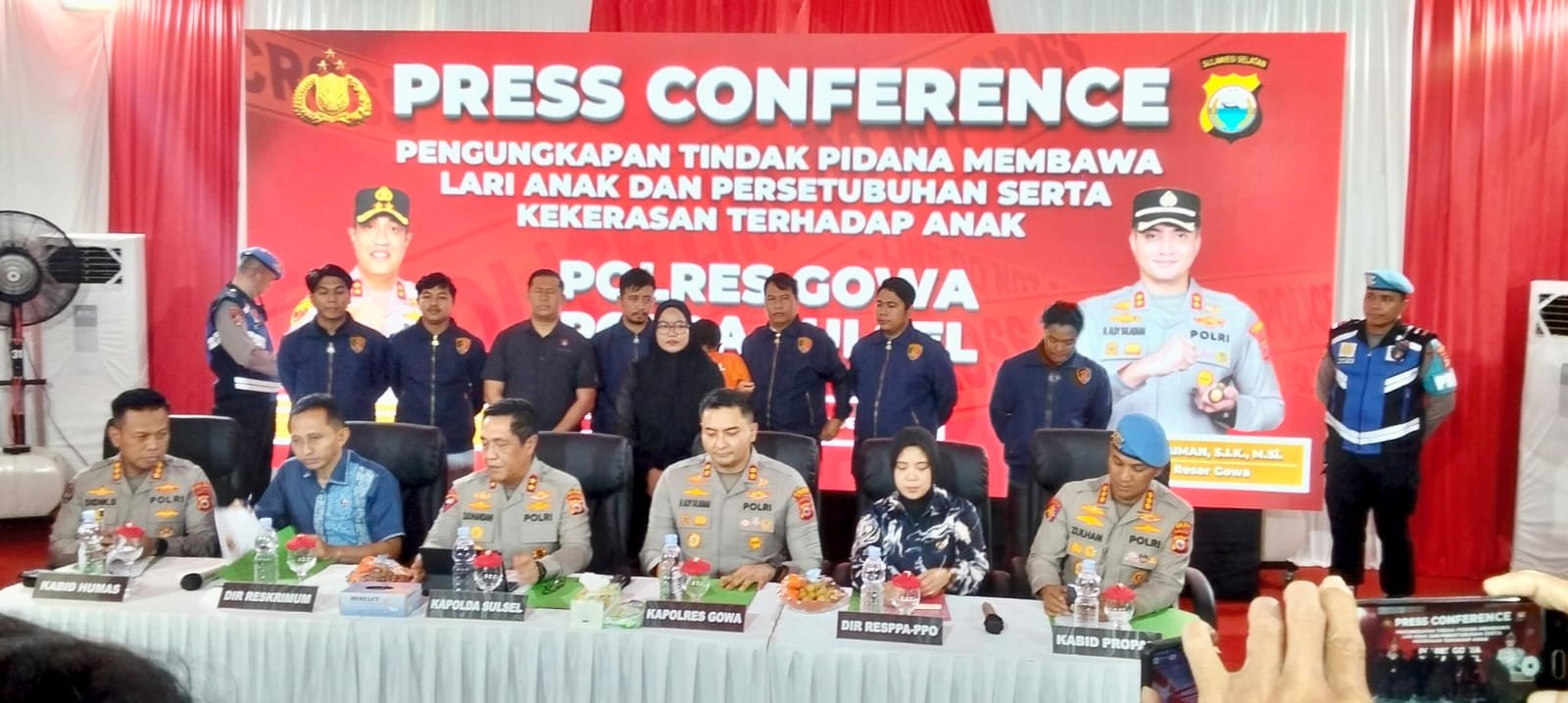 Gowa, 9 Desember 2025 — Kepolisian Daerah Sulawesi Selatan menggelar konferensi pers di Mapolres Gowa yang dipimpin Kapolda Sulawesi Selatan, Irjen Pol. Djuhandhani Rahardjo Puro, S.H., M.H. Dalam kesempatan tersebut, Kapolda memaparkan keberhasilan jajaran Polres Gowa dalam mengungkap dan mengamankan SFA, terduga pelaku kejahatan terhadap anak yang beraksi di wilayah Kecamatan Manggala, Kota Makassar.
