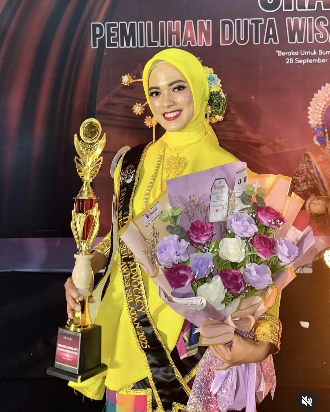 “Prestasi yang saya raih di kancah provinsi dalam ajang pemilihan Duta Wisata Sulawesi Selatan 2025 semoga menginspirasi lebih banyak generasi muda untuk peduli dan terlibat langsung dalam membangun masa depan bangsa”, tutupnya.