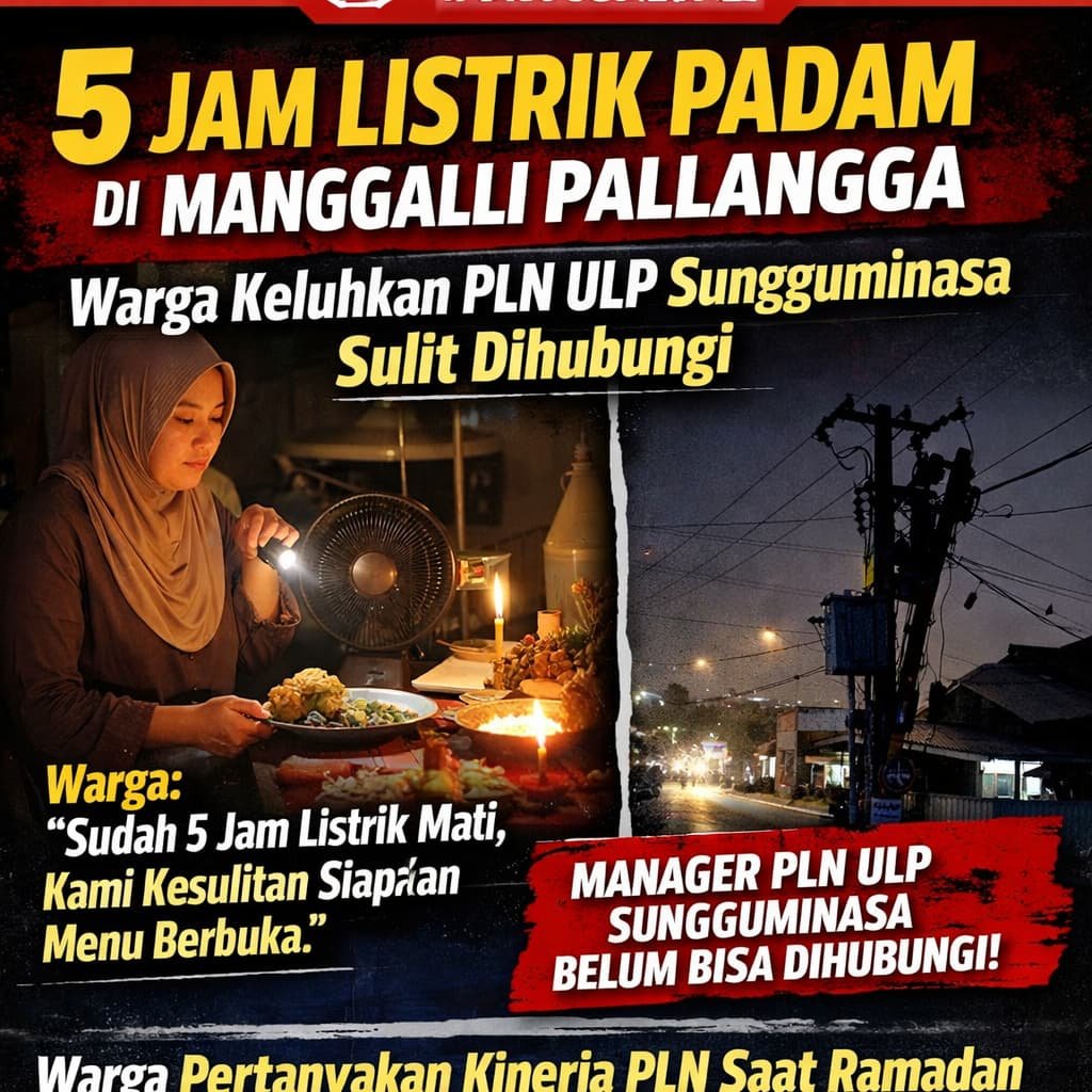 Hingga berita ini diturunkan, listrik di kawasan Jalan Dirgantara, Kelurahan Manggalli, Kecamatan Pallangga dilaporkan masih dalam kondisi padam.