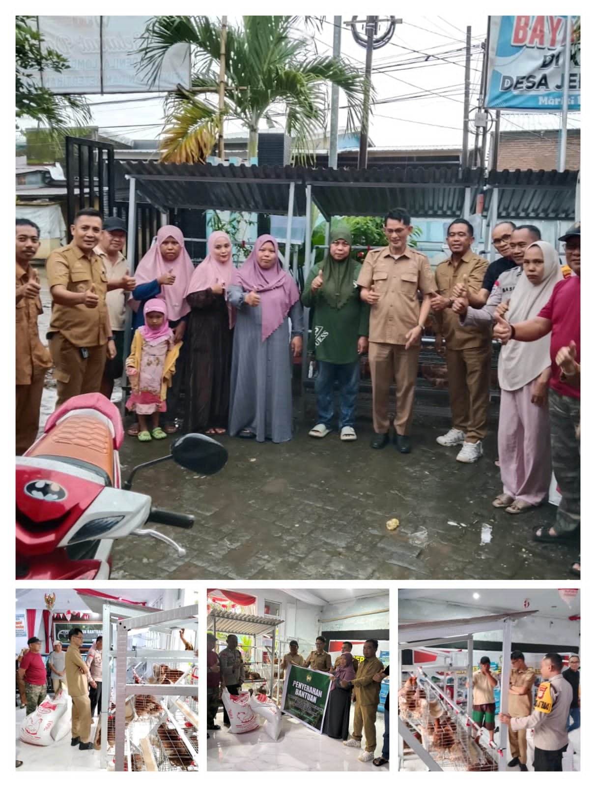 Penyerahan bantuan Kandang, Ayam petelur dan Pakan dari Pemerintah Kab. Gowa kepada 5 KK KME Desa Jenetallasa yg bersumber dari Dana Bagi Hasil Pajak Pemerintah Kab. Gowa kepada Pemerintah Desa Jenetallasa Tahun Anggaran 2025 . Program ini merupakan bagian dari upaya pemerintah dalam menangani kemiskinan ekstrem melalui pemberdayaan ekonomi masyarakat berbasis usaha produktif.
